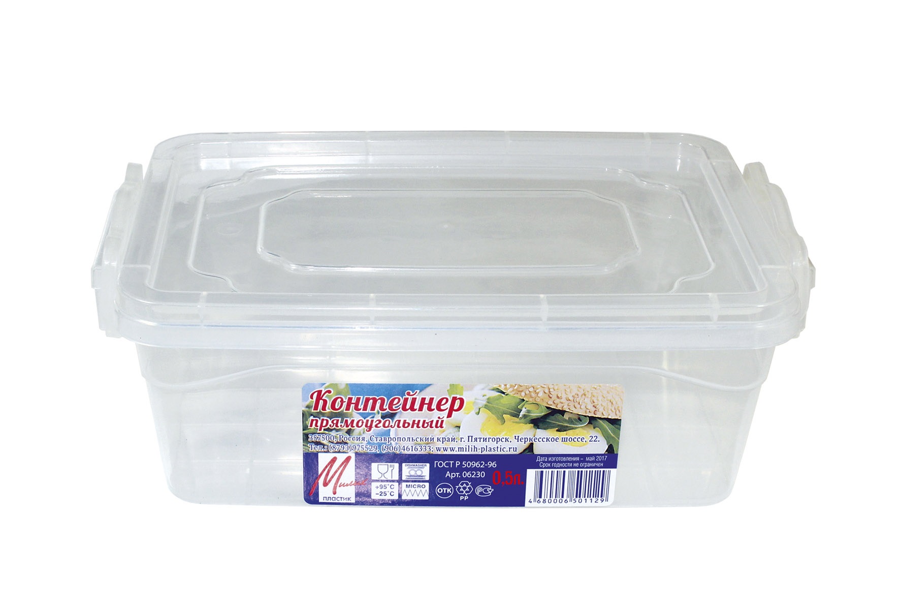 Контейнер 0,5л прямоуголный для пищевых продуктов 06305. Высота 5см,размер 14,5*11см (40)