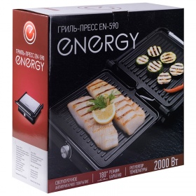 Гриль-пресс Energy EN-590.Мощность 2000Вт.Антипригарное покрытие пластин 29*23см (4)