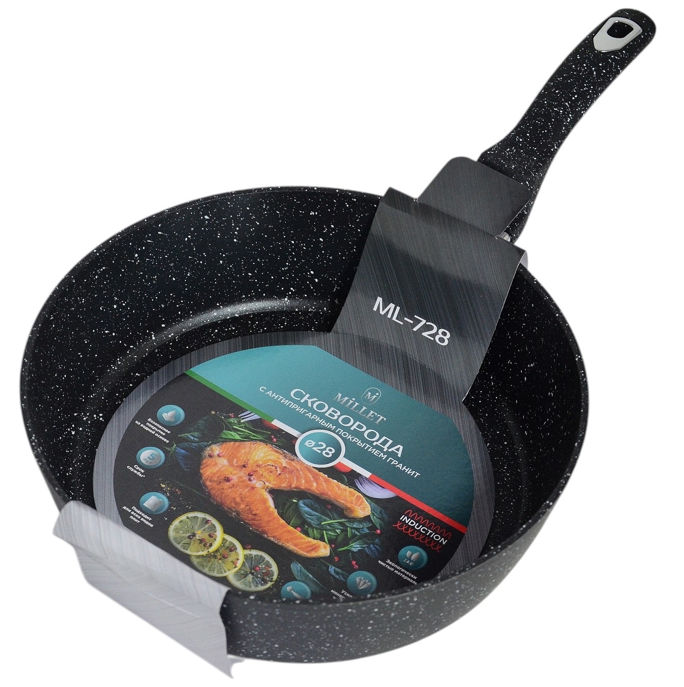 Индукция.Диаметр 28см,высота 8см.Многослойное антипригарное покрытие PFLUON.Бакелитовая ручка с покрытием Soft Touch (8)