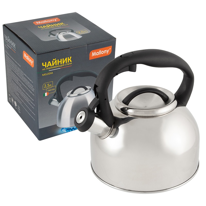 Чайник из нерж стали со свистком Melodia (зеркальная полировка).Объем 2,5л.Однослойное дно