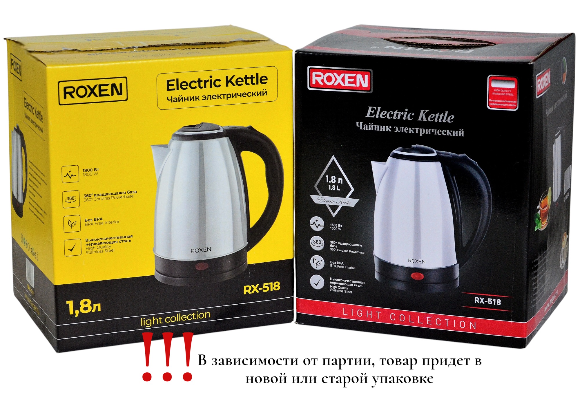 Мощность 1500-1800Вт.Объем 1,8л.Корпус нержавеющая сталь.Автоотключение при закипании.Возможность поворота на подставке на 360*.Закрытый нагревательный элемент из нержавеющей стали.Световой индикатор работы (12)