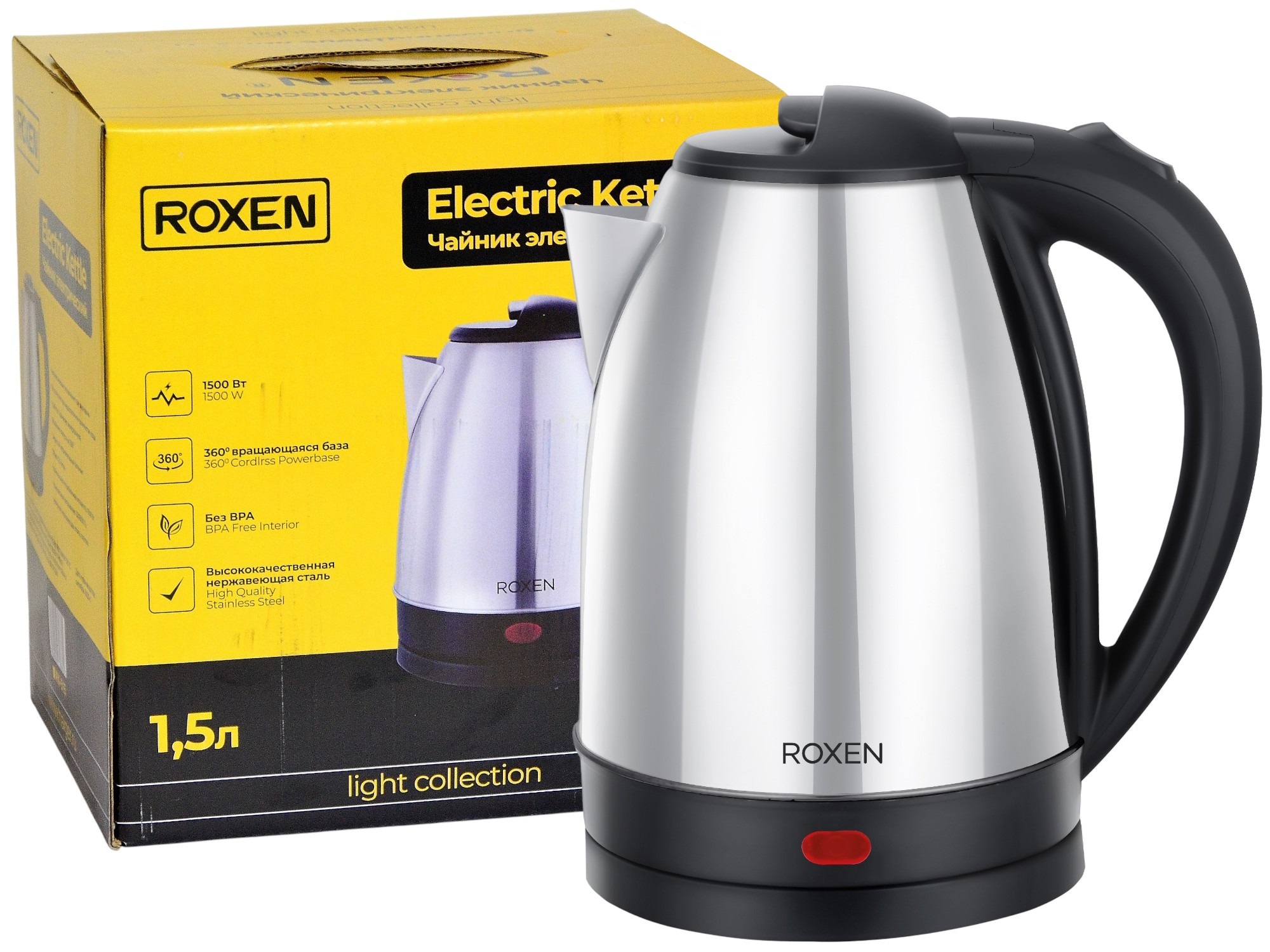 Мощность 1500Вт.Объем 1,5л.Корпус нержавеющая сталь.Автоотключение при закипании.Возможность поворота на подставке на 360*.Закрытый нагревательный элемент из нержавеющей стали.Световой индикатор работы (12)